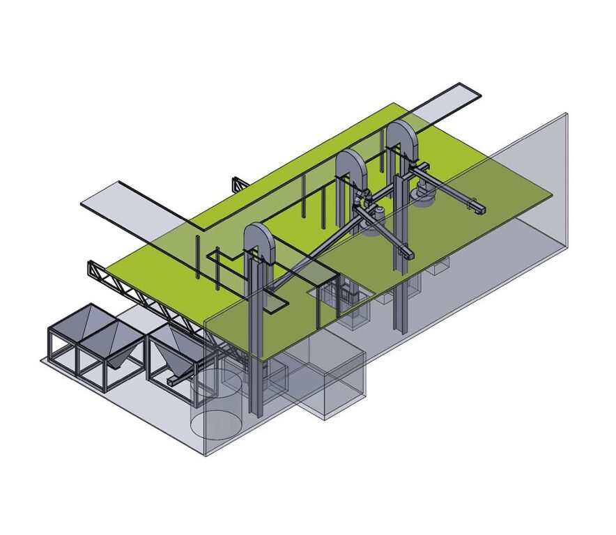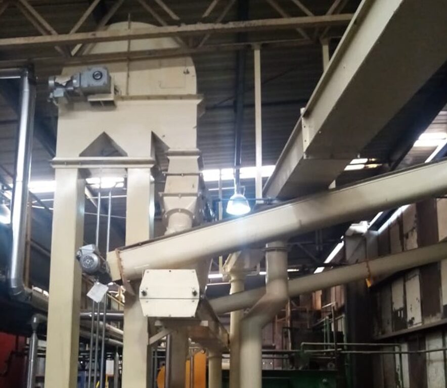 El alcance del proyecto incluyó la ingeniería mecánica y estructural de transportadores tipo rastra, transportadores helicoidales y elevadores de cangilones, considerando capacidades de carga, velocidad de operación, condiciones de abrasión y características del material transportado. Asimismo, se realizó la fabricación e integración de válvulas de dos vías y válvulas tipo cuchilla, asegurando un control eficiente del flujo de producto dentro del proceso.
