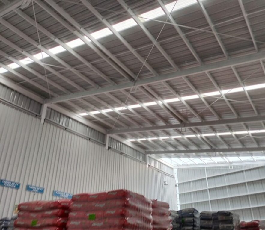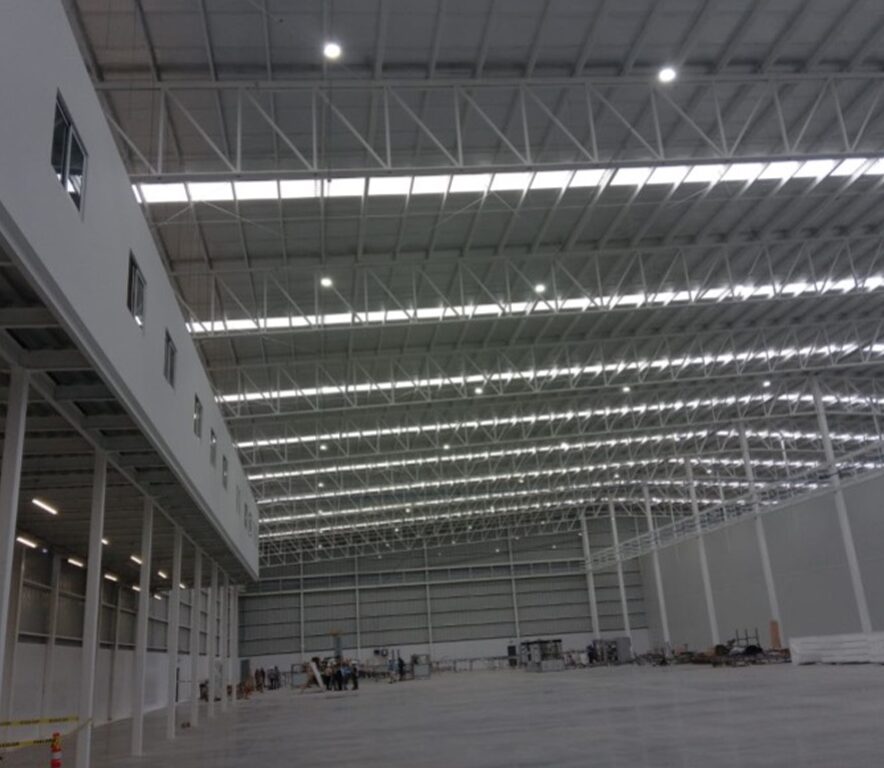 Adicionalmente, se realizó el suministro y montaje de láminas de cerramiento y techumbre, asegurando estabilidad estructural, correcta distribución de cargas y funcionalidad del espacio para operaciones industriales, logísticas y de almacenamiento. El proyecto fue ejecutado bajo una planeación integral, control de calidad en cada etapa constructiva y coordinación multidisciplinaria, garantizando tiempos de entrega eficientes y un alto estándar constructivo.